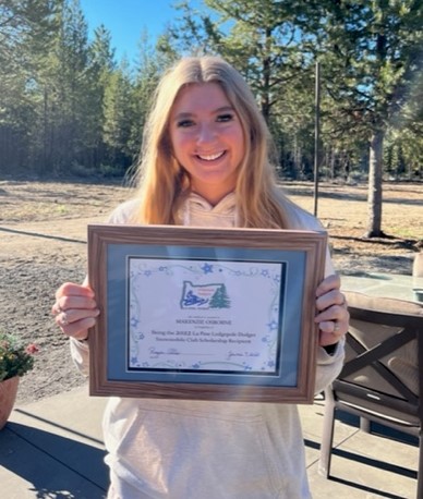 This year’s recipient for the 2022 La Pine Lodgepole Dodgers Scholarship is Makenzie Osborne.  Makenzie is planning to attend the University of Idaho and major in Biochemistry this fall.  Makenzie excelled in her studies during her high school years and has a 4.03 GPA and has a long list of awards and achievements.  She was on the honor roll all semesters for the 2018-2022 years and a National Honor Society member for the 2019- 2022.  She held the office of President for the National Honor Society for the years 2020-2022.  Makenzie played Second Team All-League Softball for the 2019 year and played First Team All-League for the 2021 year.  She also played Second Team All-League Soccer for the 2021 year.  Even participating in all these activities, she was the Student Body Vice President from 2019 to 2020.  We congratulate Makenzie and wish her the very best in the coming years.