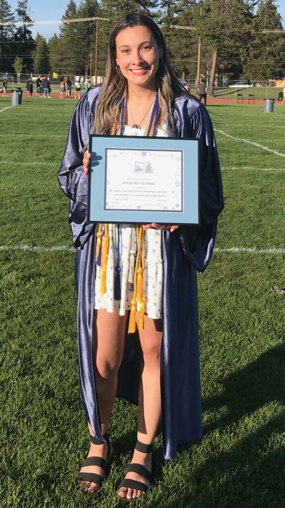 Our 2021 Scholarship recipient this year is Courtney Gutherie,  She is enrolled in Boise State University and plans to work toward a Nursing Degree. Courtney has been very active in community services such as blood drives, little league umpire, participant in the Big Tree Tournament, helped at Volleyball camp, etc.  She  has played softball, soccer and volleyball.  Courntey was in the National Honor Society, a member of AVID and in a Peer Educator Internship.  Courtney is following her dream by going to Boise State University to achieve her dream of becoming a nurse.  This is a noble profession and we are proud we could give this scholarship to her to help her move toward her life goal.  Best of Luck on your journey and we wish you well.