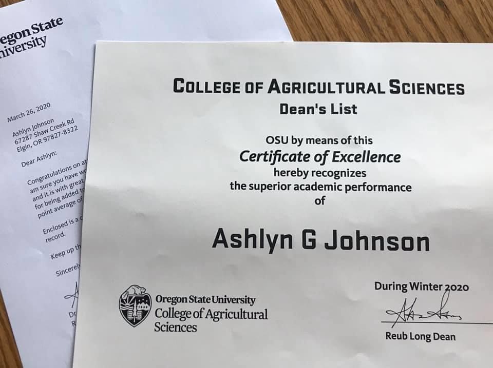 The 2019 Scholarship winner is Ashlyn Johnson.  She is enrolled in Oregon State University and is pursuing a career in veterinary medicine.  Ashlyn is taking Animal Sciences classes and Orientation to Animal and Rangeland classes.  Ashlyn was the 2018 La Pine Rodeo Queen, she was on the Honor Roll, a Scholar Athlete and received the President’s Education Award in 2017.  She also received an Outstanding Student Award and multiple awards in 4-H and the Oregon High School Equestrian Team.  Ashlyn volunteered many hours in the community doing many wonderful things.  She helped with the La Pine Christmas Baskets, she participated in the Adopt-A-Family program, cut fleece to make blankets for the local warming shelter and helped with various events at the La Pine Senior Center.  Ashlyn is a highly motived and dedicated young woman.  We are so proud of her and her many accomplishments.  We wish her great success and congratulations!